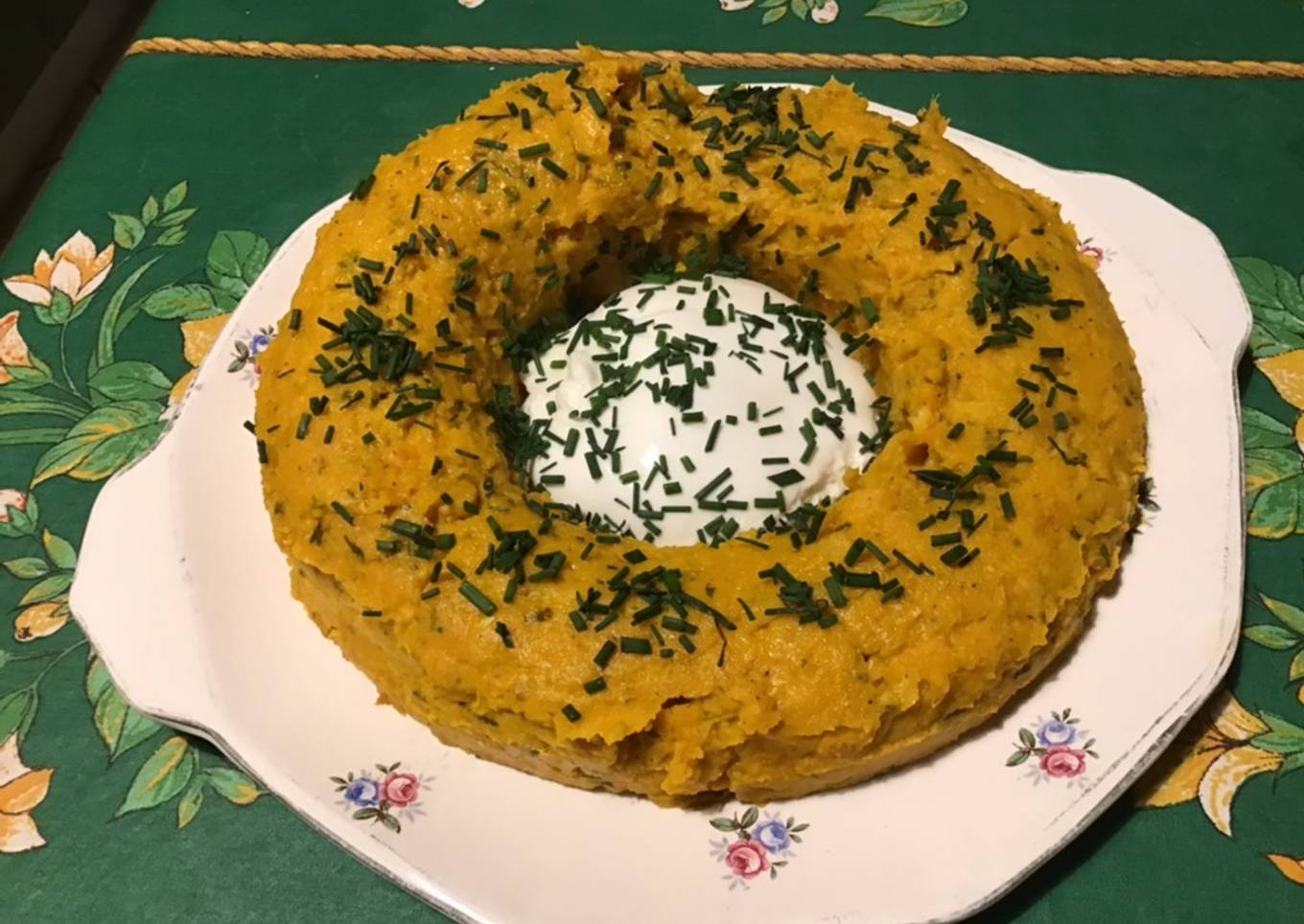 Couronne de potimarron,oignon et parmesan,cœur fondant de burrata