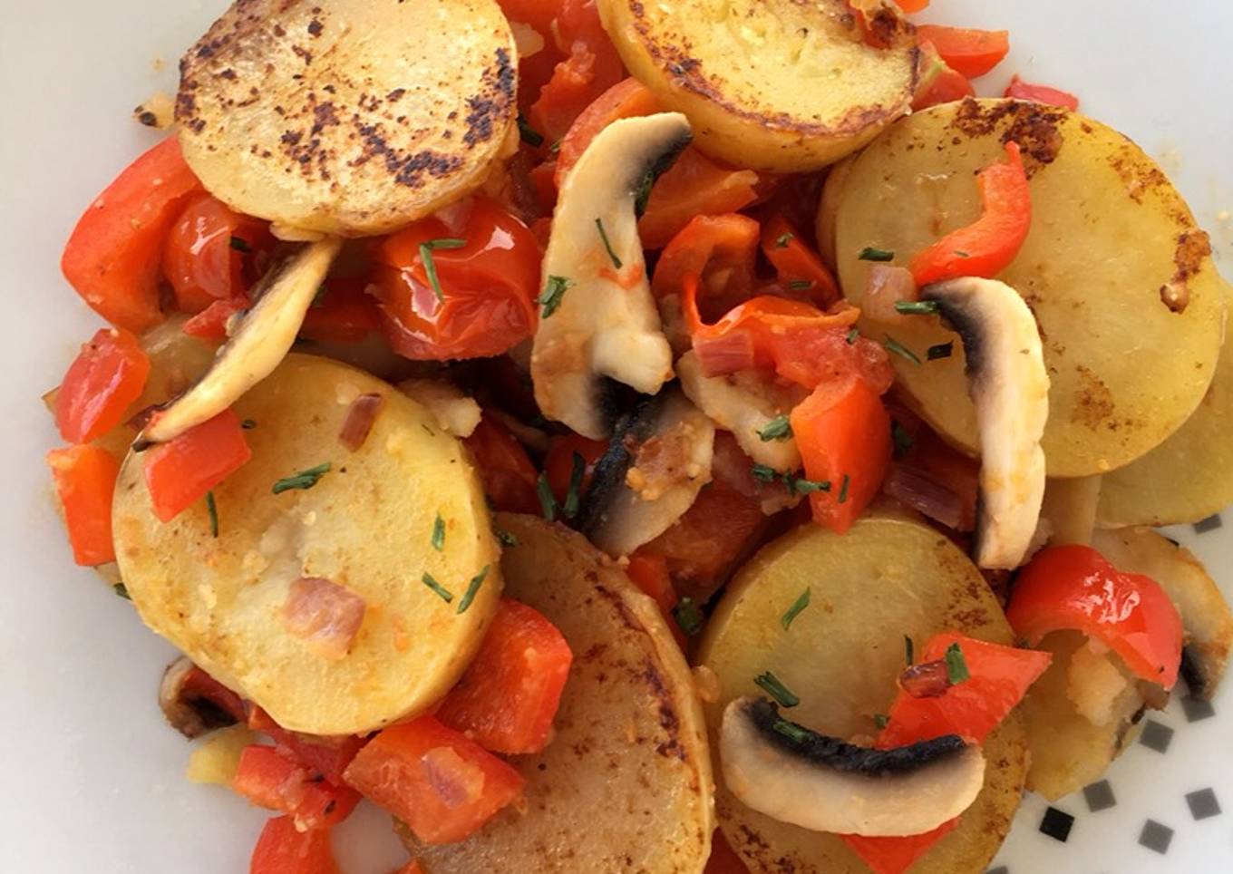 - Ensuite découpez chaque ingrédient à votre convenance et faites revenir le tout à la poêle jusqu’à ce que vous estimiez les aliments cuits. Le mélange de saveurs est un délice ☺️