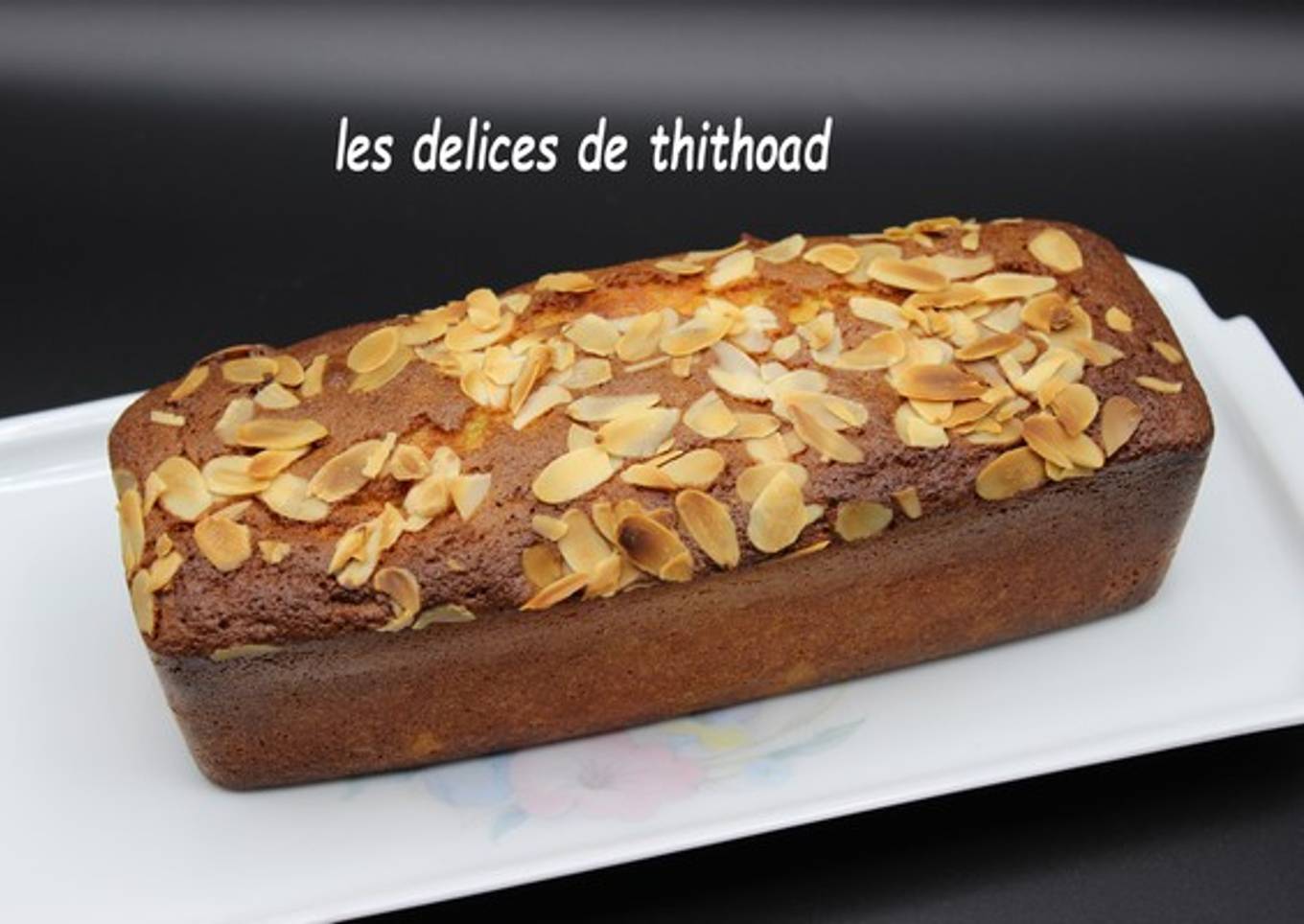Verser la pâte dans un moule à cake et saupoudrer d’amandes effilées.