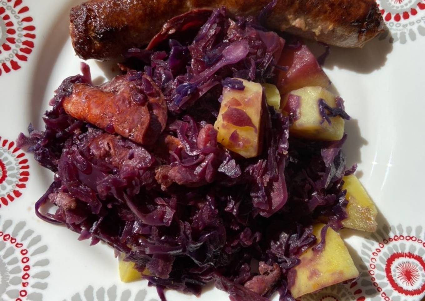 Chou rouge pommes de terre lardons et chorizo