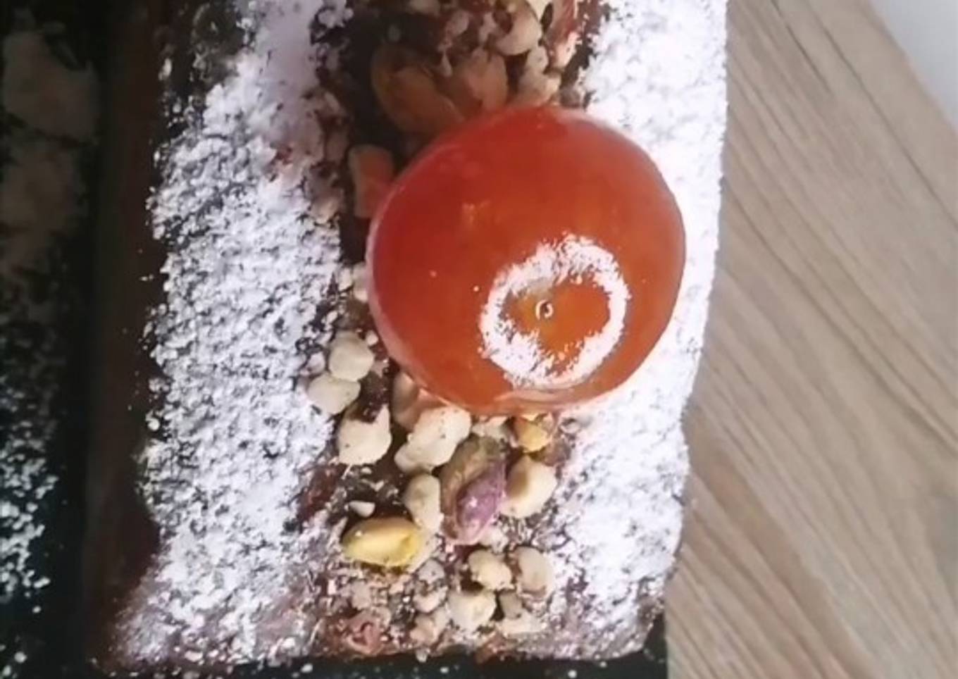 - Une fois refroidi on badigeon de confiture d'abricot saupoudrez de sucre glace et de noisette et pistache concassé