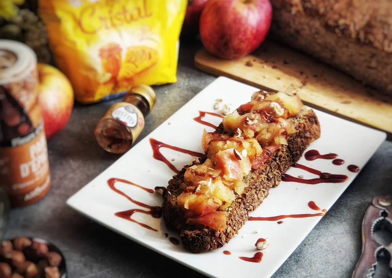 - Servir sur une tartine croustillante, décoré de noisettes et d'un filet de sirop