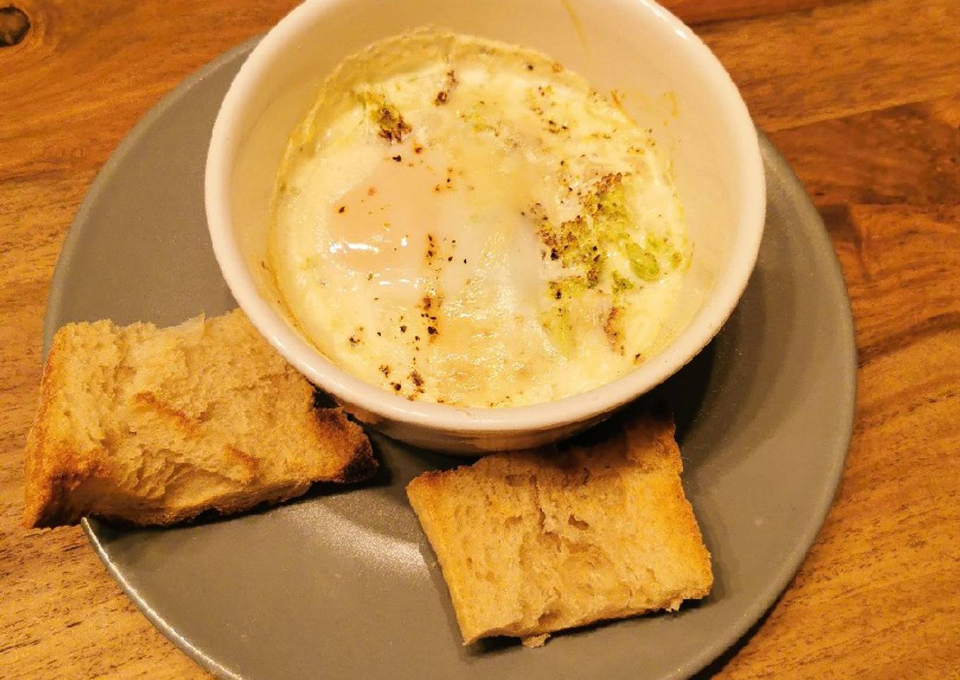 - Mettre 5 cl de crème dans chaque ramequin. Déposez un œuf dans le ramequin. Salez et poivrez et ajoutez un peu de parmesan.